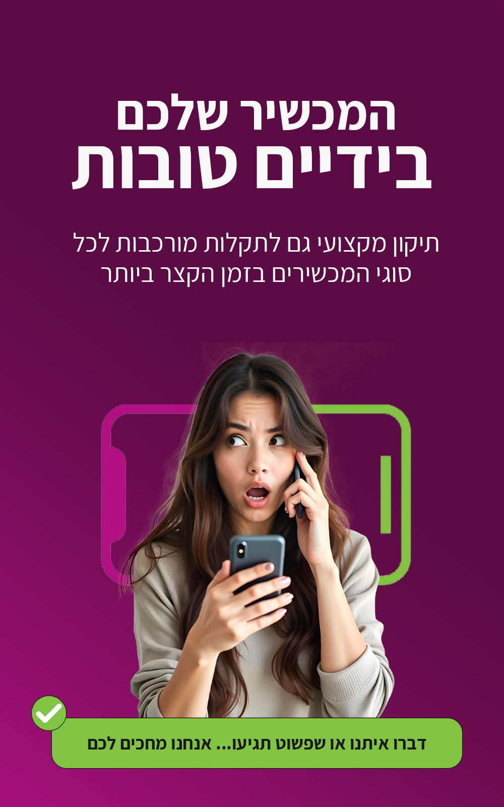 התמחות אמיתית בתיקונים – לא עוד חנות שמוכרת “וגם קצת מתקנת”, אלא מעבדה שמובילה את תחום השירות והתיקון באזור