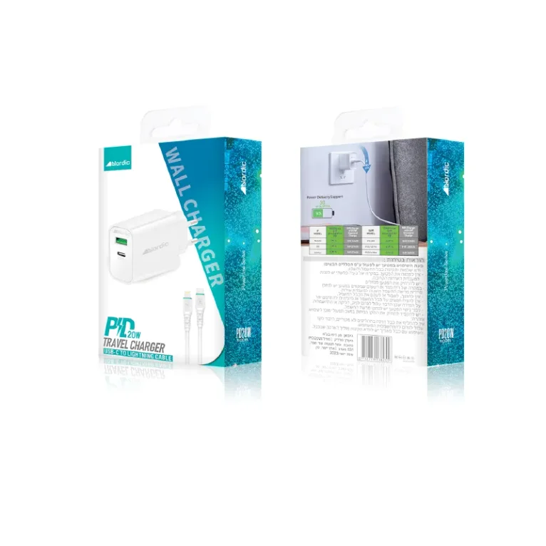 מטען קיר 20W Nordic עם כבל סי ללייטנינג (PD)