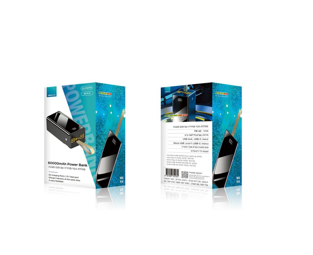 סוללת גיבוי PBDP30 60000mAh PD 22.5W – טעינה מהירה ונוחות ללא פשרות